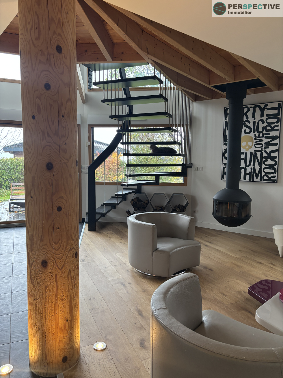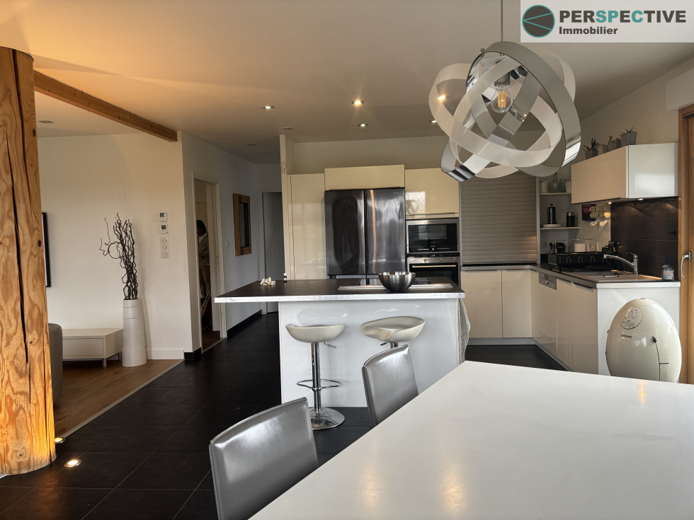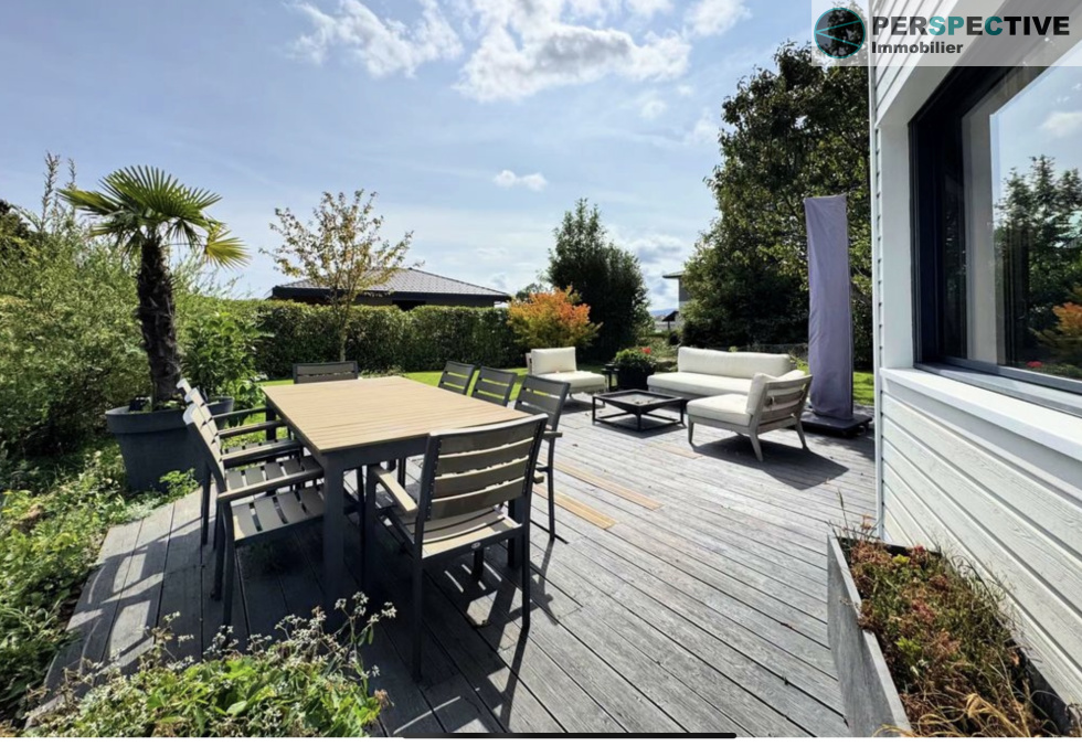 Superbe maison contemporaine en bois de 231 m², alliant confort moderne et charme naturel.Elle se compose d’un spacieux séjour lumineux avec cheminée et d’une cuisine ouverte entièrement équipée, idéale pour partager des moments conviviaux.La partie nuit offre 4 chambres, dont une suite parentale avec dressing et salle d’eau privative et une grande chambre visiteurs avec salle d'eau au RDC. Une salle de bain et 4 WC.Une buanderie fonctionnelle donne accès à un grand garage. À l’extérieur, profitez d’un jardin paysagé offrant une vue imprenable sur les Alpes, d’un carport double et d’un terrain piscinable. Côté performances énergétiques, la maison bénéficie d’une excellente isolation, de panneaux photovoltaïques (revente d’électricité), d’un ballon thermodynamique et d’un chauffage au sol.Une maison lumineuse, chaleureuse et économe en énergie, prête à accueillir votre famille. Cette maison est idéalement située, elle bénéficie d'un cadre magnifique tout en étant proche des accès de bus TPG, des écoles et des commerces. Avisiter sans tarder!