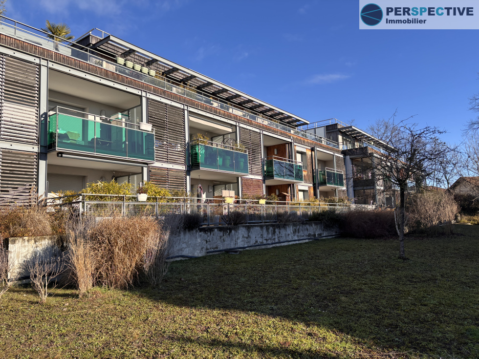 Prévessin – Appartement T3 au calme avec terrasse et garage double Dans un environnement privilégié et verdoyant, au cœur d’une résidence sécurisée entourée d’un beau parc, découvrez ce charmant appartement T3 de 68 m². Il offre une pièce de vie conviviale et lumineuse avec cuisine équipée, s’ouvrant sur une grande terrasse de 13 m², parfaite pour les moments de détente. L’espace nuit se compose de deux chambres avec rangements intégrés, d’une salle de bains, et de WC séparés. Ce bien est complété par une cave ainsi qu’un double garage, apportant un vrai confort au quotidien. Un grand parking est egalement à disposition. Idéalement situé, l’appartement bénéficie d’un accès immédiat aux transports (bus TPG au pied de l’immeuble), ainsi qu’à proximité des écoles de la Bretonnière, collèges de Prévessin et commerces.