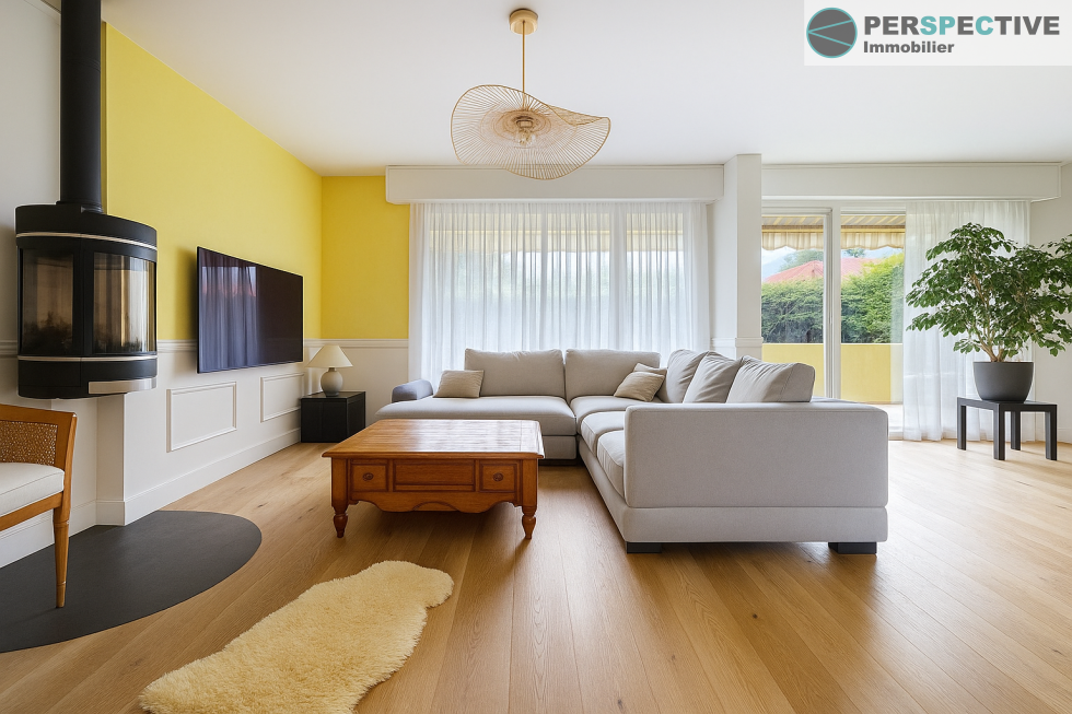 Ornex – Superbe T4 avec terrasse, à deux pas de la Suisse Dans un environnement calme et verdoyant, idéalement situé dans la partie basse d’Ornex, à proximité immédiate de la frontière suisse, des transports TPG, des ecoles et de toutes les commodités, venez découvrir ce bel appartement de 94 m² en rez-de-chaussée. Dès l’entrée, vous serez séduit par ses volumes généreux et ses nombreux rangements. L’espace de vie, lumineux et chaleureux, se compose d’un séjour cosy agrémenté d’un poêle à bois, d’un espace salle à manger ouvrant sur une agréable terrasse, ainsi que d’une cuisine entièrement équipée. L’espace nuit offre trois belles chambres avec rangements, une salle de bains, une salle d’eau et des WC séparés, garantissant confort et fonctionnalité pour toute la famille. En annexes, une cave et un garage en sous-sol viennent compléter ce bien. Situé au sein d’une petite copropriété, cet appartement bénéficie d’un cadre de vie paisible et verdoyant. Un bien rare à découvrir sans tarder !